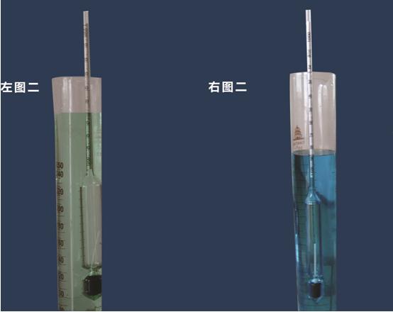 左图二:冰点为-25℃的劣质防冻液的密度仅有0.957g/cm